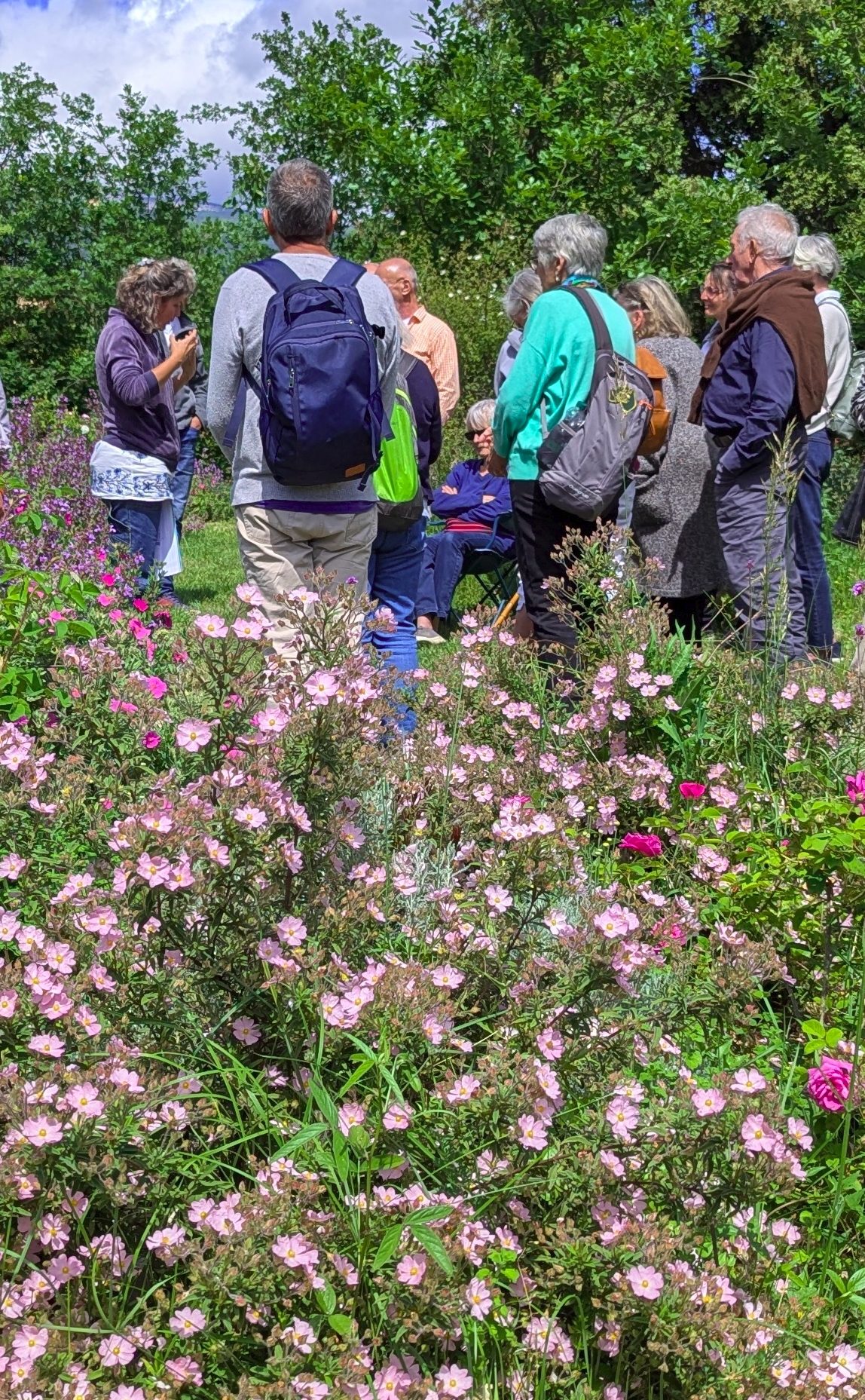 Sylvie en visite dans la roseraie